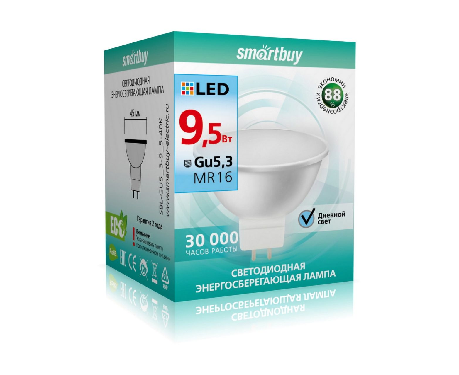 Лампа светодиодная SMARTBUY GU5.3 (MR16) 9,5Вт 4000K (нейтральный свет) (1/10)