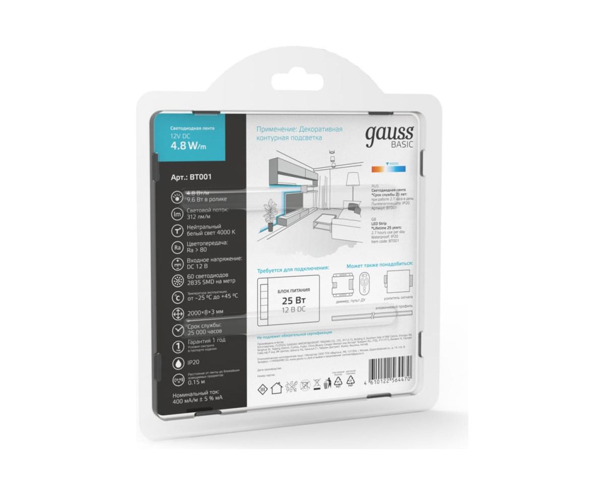 Лента светодиодная Gauss Basic BT001 2м