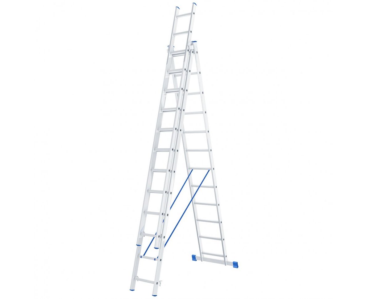 Лестница СИБРТЕХ 3х12 ступеней, алюминиевая, трехсекционная, Россия 97822