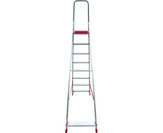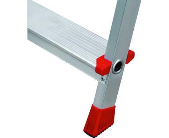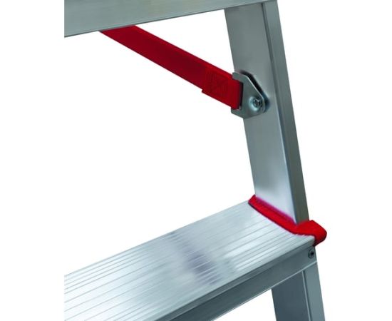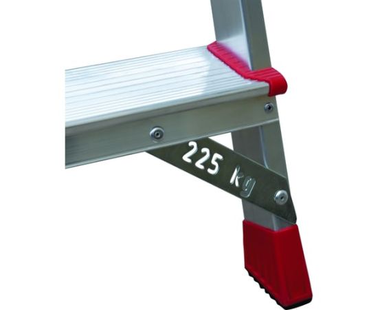 Стремянка отличается высоким уровнем безопасности, устойчивостью и надежностью. Имеет ступеньки шириной 80 мм с профилированной поверхностью для удобства работы. Лестница не занимает много места при хранении. Максимальна нагрузка для стремянки - 225 кг.