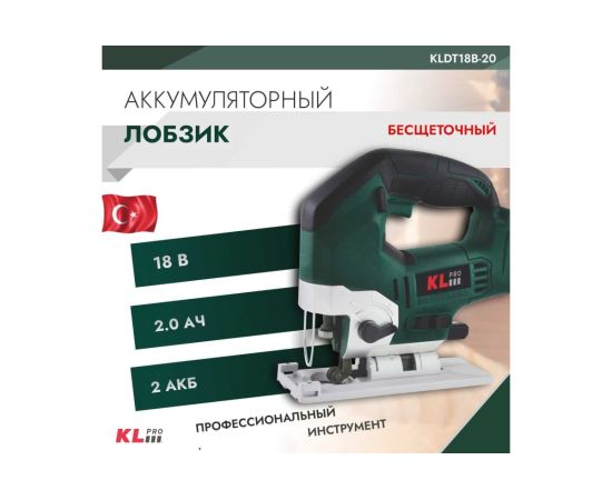 Профессиональный лобзик бесщеточный KLPRO KLDT18B-20 (18В, Li-ion-2шт, 2.0Ач, патрубок для пылесоса, полотна (дерево/металл, З/У , кейс)