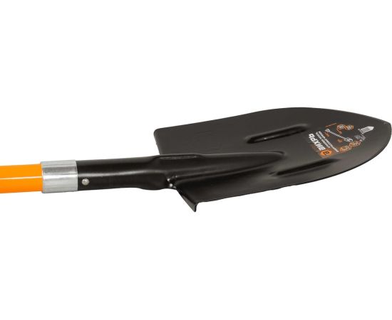 Рессорно-пружинная сталь придаёт лопате дополнительную жёсткость и гарантирует лёгкое проникновение в почву.
