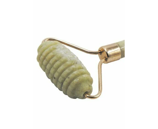 Массажный набор для лица. Материал - высококачественный натуральный камень нефрит с декором "под золото". В набор входят: двусторонний ролик - размер 15х6х4 см; скребок Гуаша - размер 7,3х5 см.