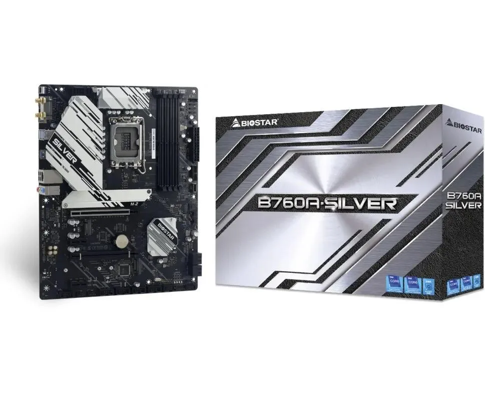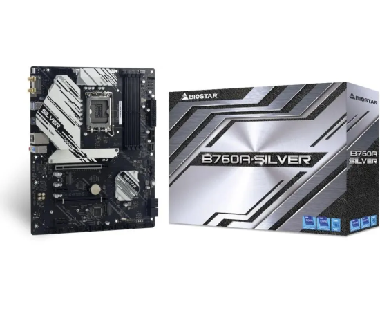 MB s1700 BIOSTAR B760A-Silver Intel B760, 4xDDR5-4800 МГц, 2xPCI-Ex16, 3xM.2, Standard-ATX