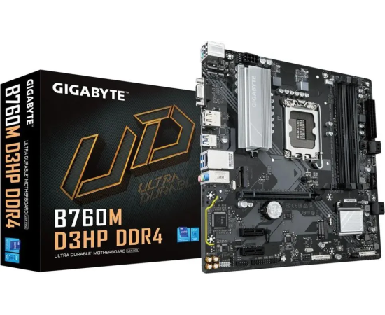 MB s1700 Gigabyte B760M D3HP DDR4, Intel®B760, 4xDDR4-3200, D-SUB+HDMI+DP, 1xPCI-Ex16, 2xPCI-Ex1, 4xSATA3(RAID 0/1/5/10), 2xM.2, 8Ch Audio, GLan, (2+4)xUSB2.0, (3+2)xUSB3.2, (0+1)xUSB3.2 Type-C™, 1xPS/2, ATX, RTL