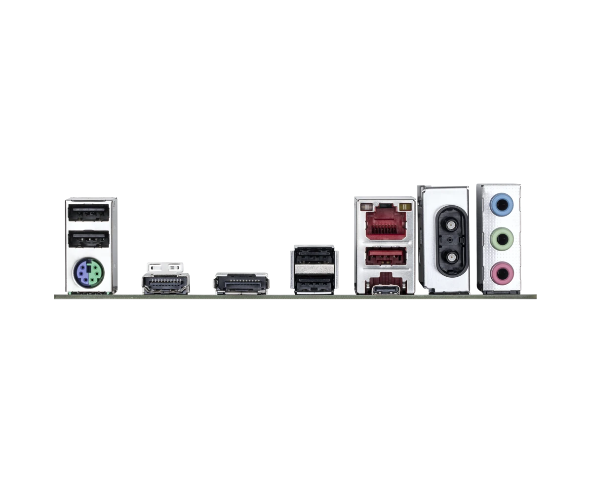 PS/2, 4 x USB 2.0, USB 3.2 Gen2, USB 3.2 Gen2x2 Type-C, HDMI, DisplayPort, RJ-45