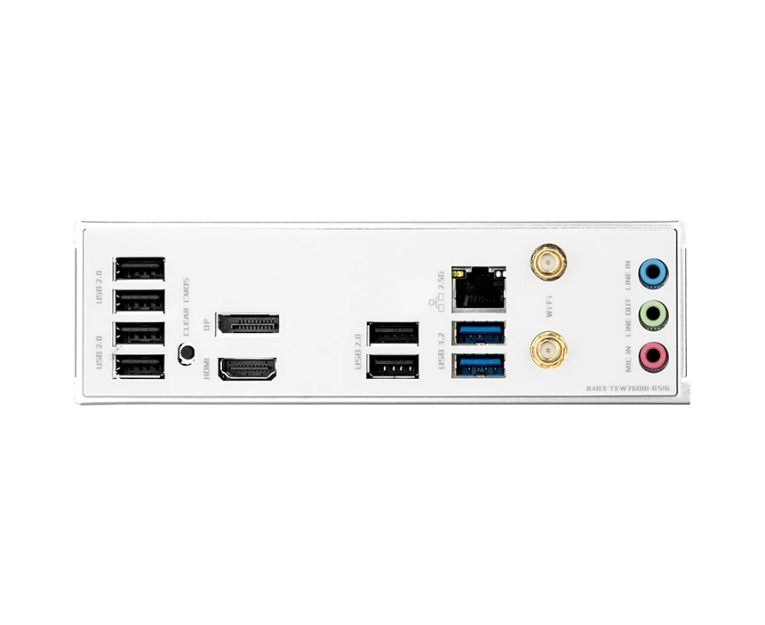 6 x USB 2.0, 2 x USB 3.2 Gen2, HDMI, DisplayPort, RJ-45