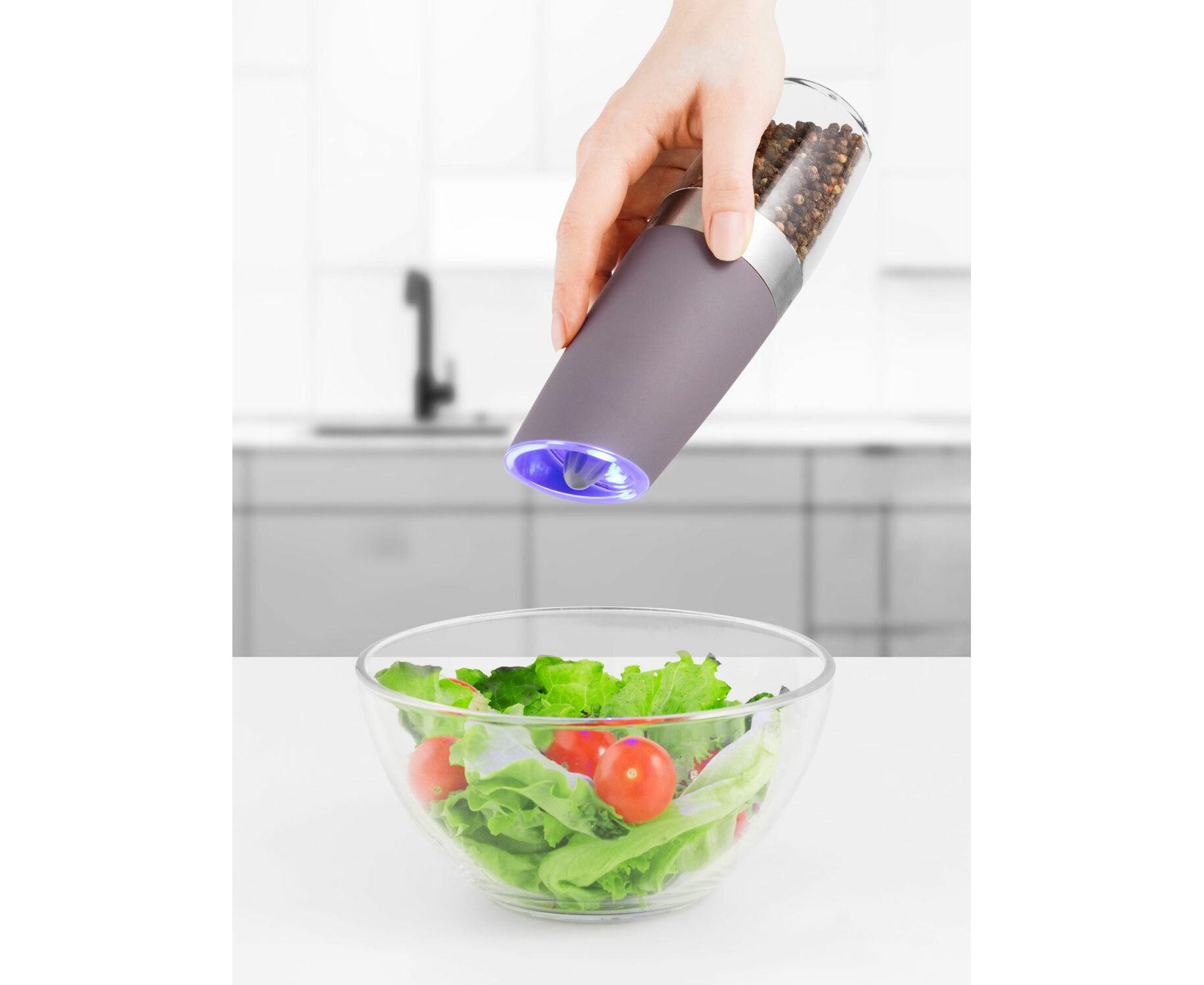 LED подсветка автоматически активируется, когда мельница начинает работать, что позволяет лучше видеть сколько специй вы добавили в блюдо.