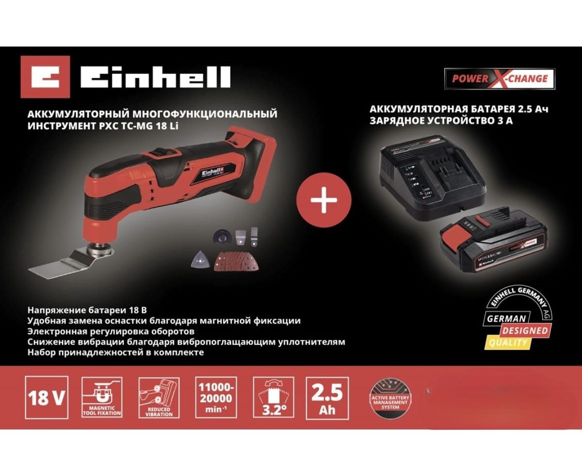 МФИ Einhell PXC TC-MG 18 li (4465170SET) аккумуляторный + 1 акк. pxc 2.5ач 18в + зу 3а