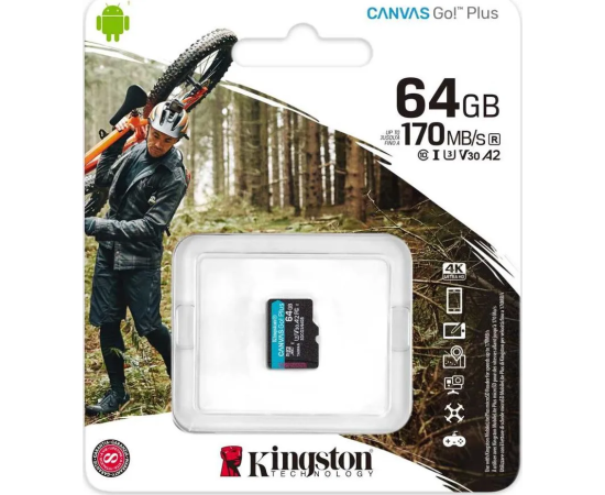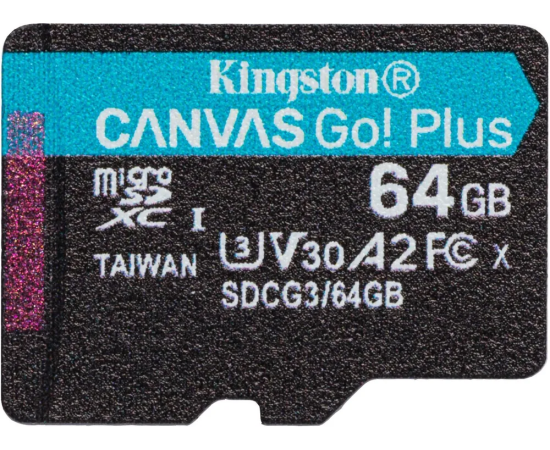 MicroSD 64GB Kingston Class 10 Canvas Go Plus UHS-I U3 V30 A2 (170/70 Mb/s) без адаптера