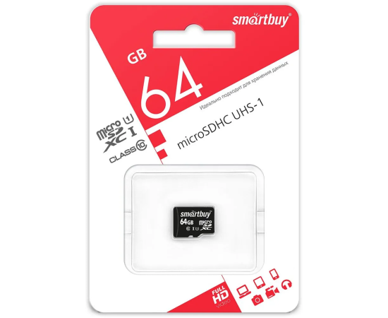MicroSD 64GB Smart Buy Сlass 10 UHS-I без адаптера