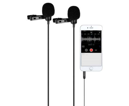 Микрофон CANDC DC-C2, петличный, Jack 3.5mm, черный, двойной всенаправленный
