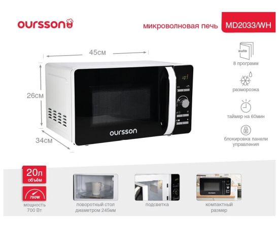 Микроволновая печь Oursson MD2033/WH, 700Вт, 20л, белый /черный