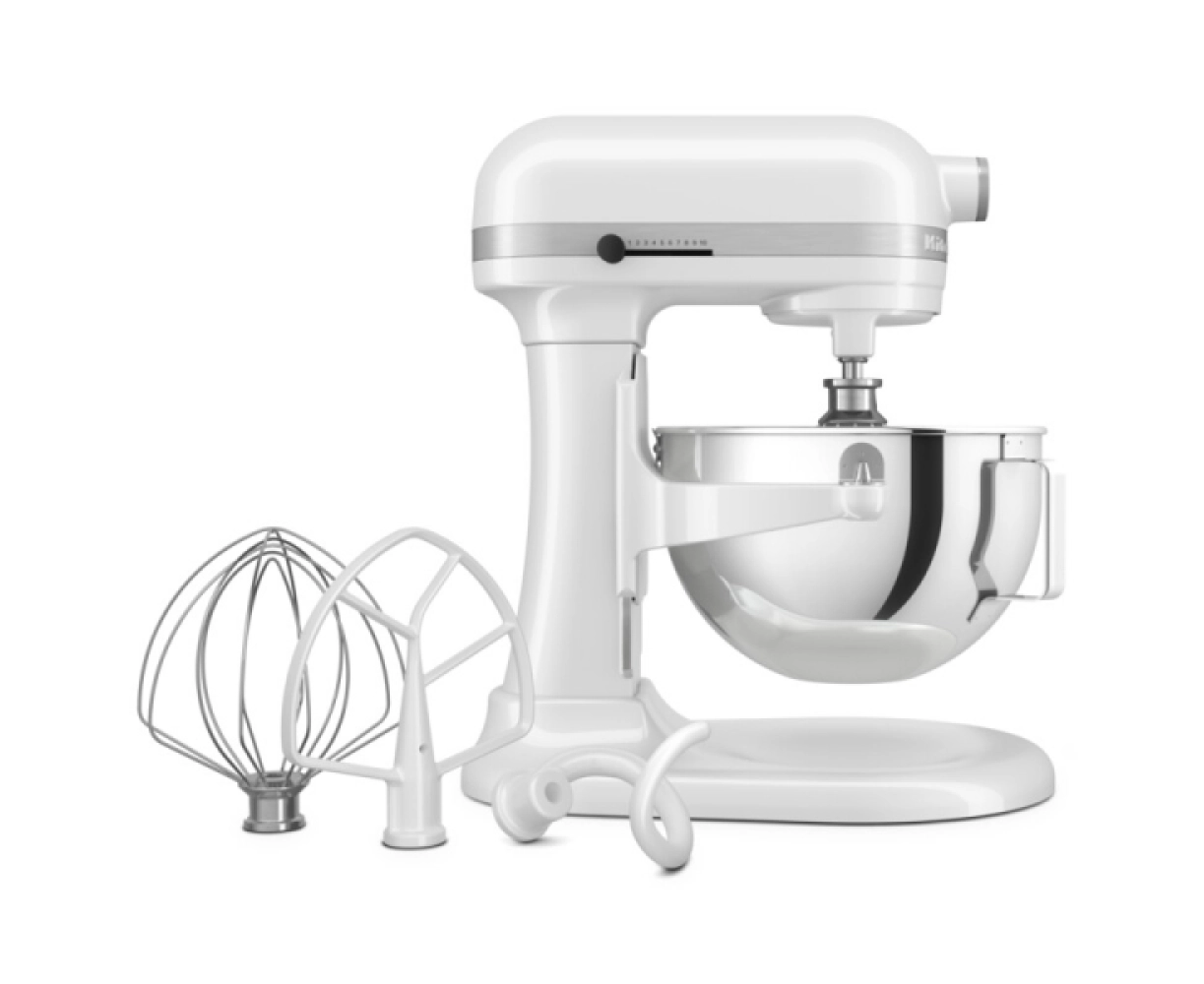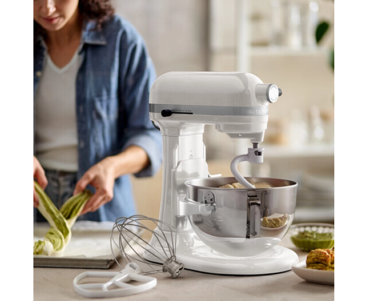 Миксер KitchenAid Heavy Duty 5,2 л (модель 5KSM55SXXEWH) — это профессиональный кухонный прибор, разработанный для интенсивного использования. Он оснащён системой подъёма чаши, что делает его более устойчивым и удобным для работы с большими объёмами теста и ингредиентов. Миксер предлагает 11 скоростей, включая функцию плавного старта для предотвращения разбрызгивания, и позволяет эффективно смешивать как легкие, так и тяжелые смеси.