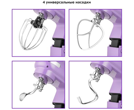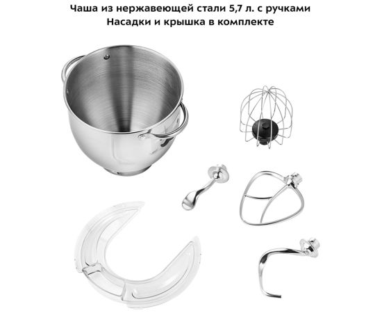венчик для взбивания, крючки для замешивания теста, насадка для приготовления пюре
