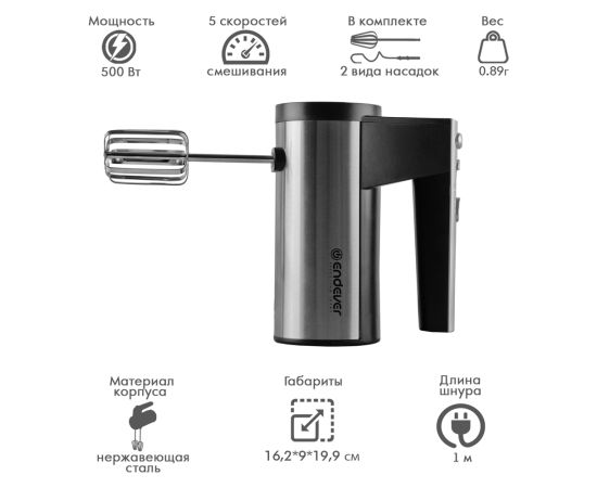 Миксер ручной Endever Sigma-06 черный/стальной