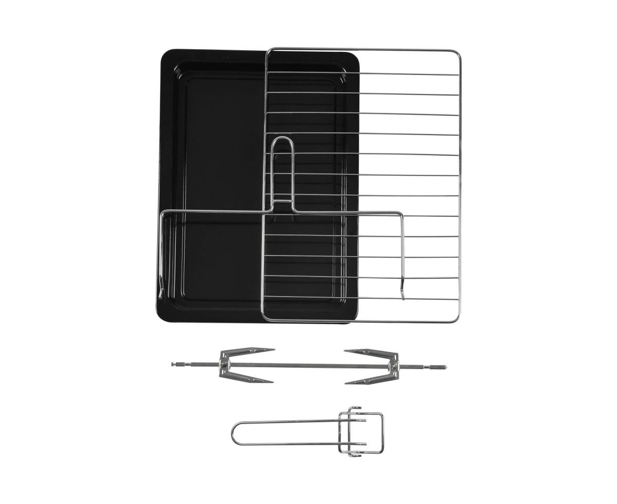 Также преимуществом данной модели является наличие вертела для гриля. В мини-печи предусмотрено 3 основные функции при различных сочетаниях конвекции, вертела и поочерёдного или одновременного включения верхнего и нижнего нагревательных элементов для приготовления продуктов.