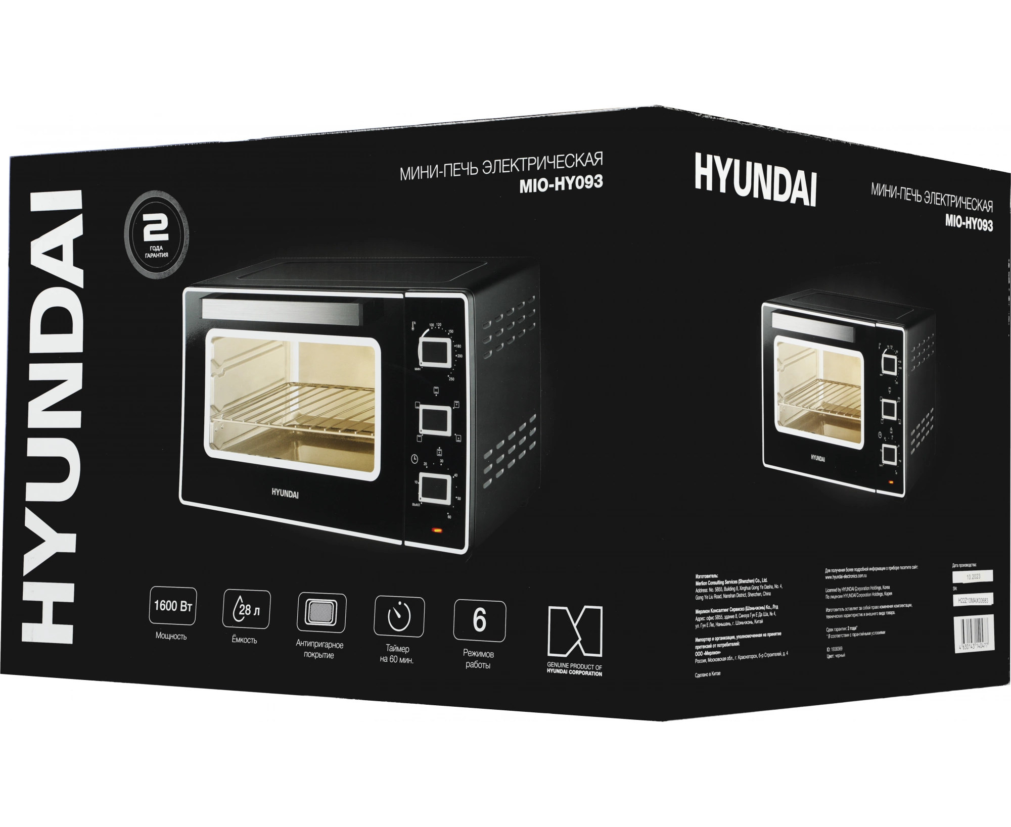 Мини-печь Hyundai MIO-HY093 28л. 1600Вт черный