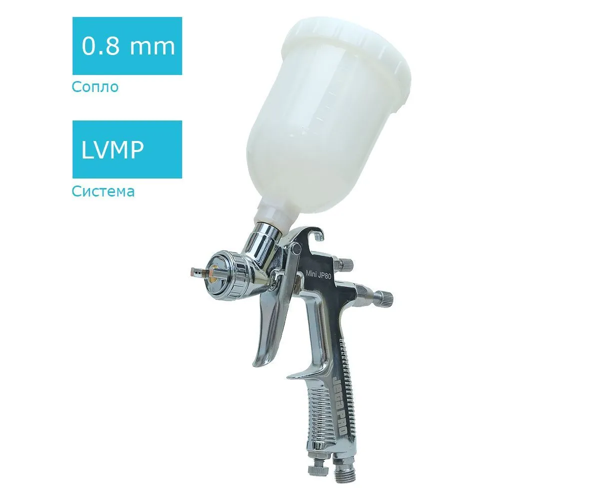 Миникраскопульт пневматический Jeta PRO Mini JP80/08 LVMP профессиональный, сопло 0,8мм, верхний бачок пластик 0,25л