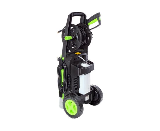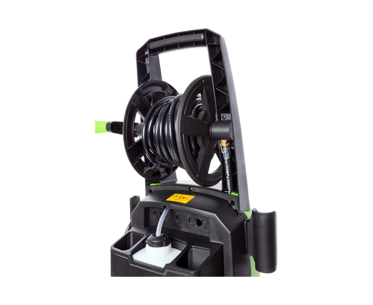 - Специальная встроенная катушка с удобной рукояткой для сматывания шланга высокого давления