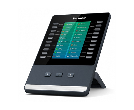 Yealink EXP50 - модуль расширения BLF-кнопок с цветным 4,3" LCD-дисплеем. Совместим в работе с IP-телефонами Yealink серии Т5: SIP-T58V, SIP-T58A, SIP-T56A, SIP-T54S и SIP-T52S. Значения 20 программируемых кнопок отображаются на трех страницах прокрутки, таким образом в память модуля расширения можно внести до 60 дополнительных значений. Доступ к любой из трех страниц одним кликом осуществляется за счет кнопок навигации в нижней части корпуса устройства. Устройство подходит для использования руководителями организации и секретарями.