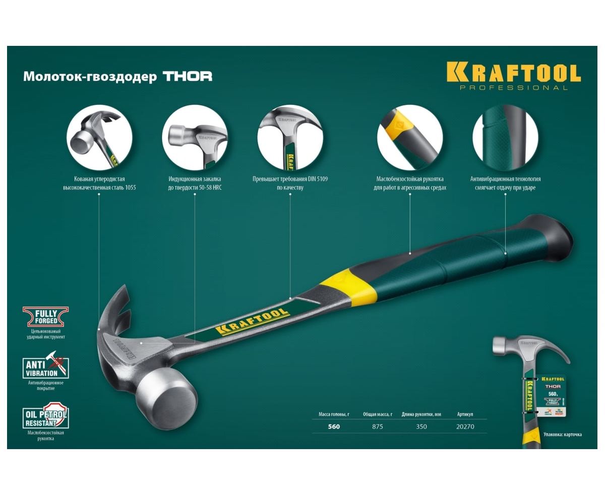 Технические характеристики молотка-гвоздодера KRAFTOOL 20270
