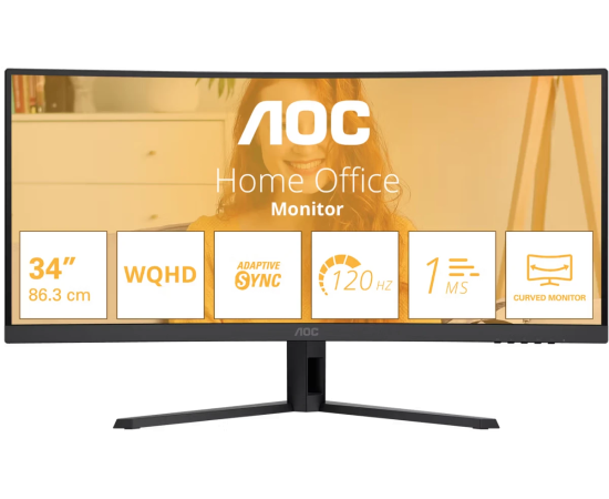 Монитор AOC CU34B3E 1500R, 21:9, UWQHD, 1/4ms, 300cd, 120Hz, HDMI, DP