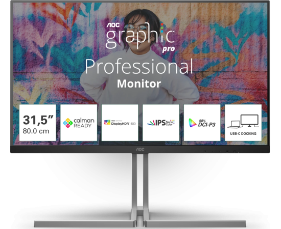 Монитор AOC U32U3CV Black 4K, IPS, 3840x2160, 4 ms, 178град./178град., 400cd/m, 50M:1, +2xHDMI 2.0, +DisplayPort 1.4, +4xUSB 3.2, USB Type-C, +MM, +RJ