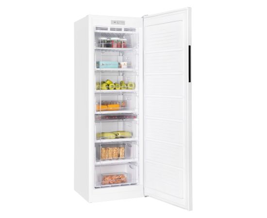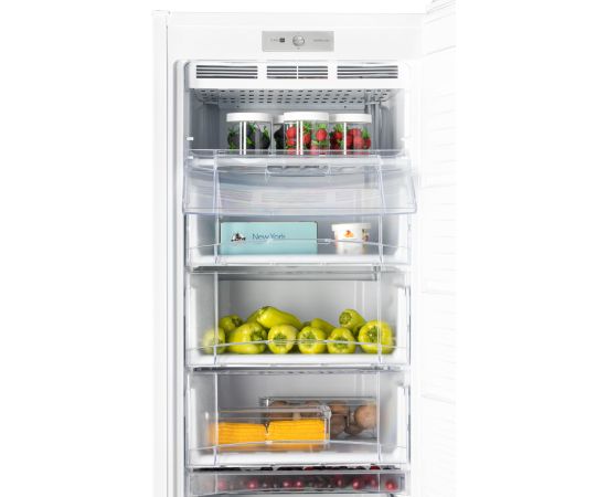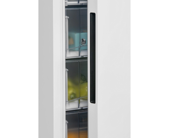 Морозильник белого цвета с черной интегрированной ручкой и продуманным внутренним пространством станет стильным и технологичным акцентом на вашей кухне. Высота устройства 1,737 м. Для комфортного открытия и установки морозильника в удобном месте — дверь можно перенавесить с правой стороны на левую.