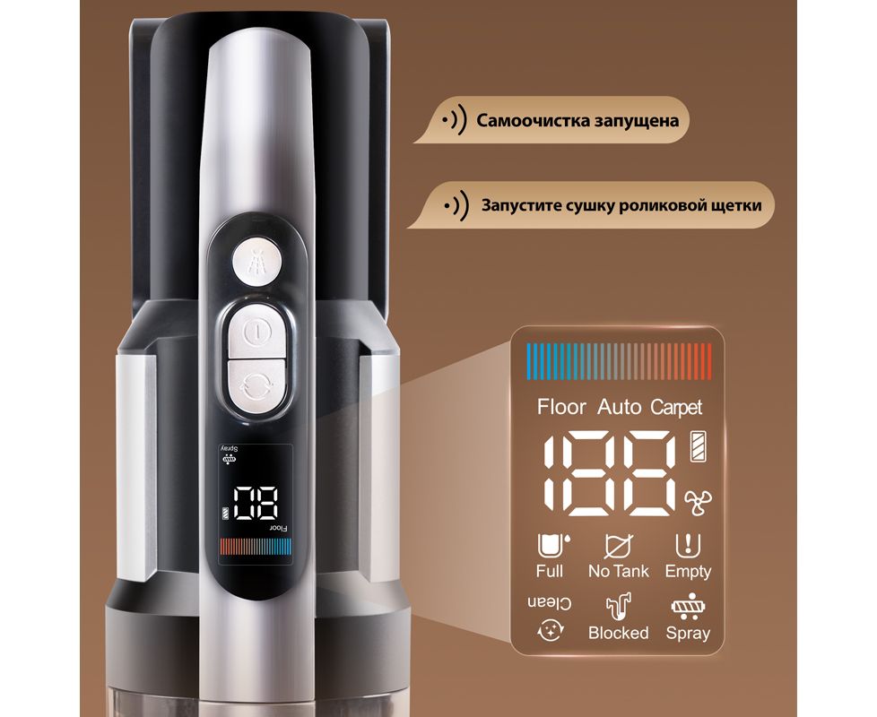 На LED-дисплее вы можете отслеживать уровень заряда, следить за индикатором чистоты пола и управлять режимами работы пылесоса. Дисплей оснащен функцией голосовых оповещений, позволяющих вам оптимизировать уборку. Голосовые оповещения доступны на 5 языках, включая русский.