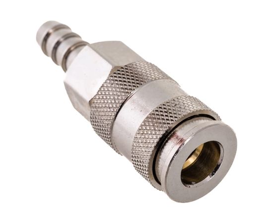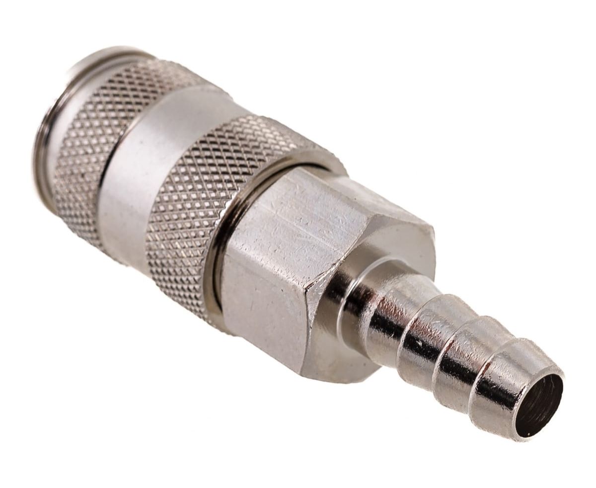 Муфта БРС европейского типа с установочной частью под шланг 9.5 мм Jonnesway GM-03AH 49477 используется совместно с компрессорным оборудованием для соединения шланга с пневмоинструментом. Внутренний диаметр подсоединяемого шланга - 9.5 мм. Крепится к инструменту с помощью соединения рапид тип "мама", а к шлангу - ёлочкой. Созданная конструкция обладает высокой надежностью и герметичностью.