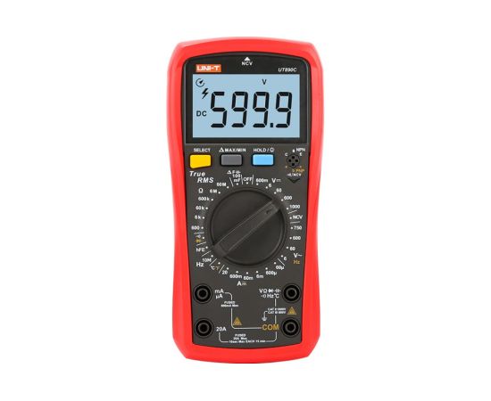 Цифровой универсальный мультиметр UNI-T UT890C 00-00007396 с большим ЖК-дисплеем разрядностью 6000. Имеет звуковое и световое оповещение.