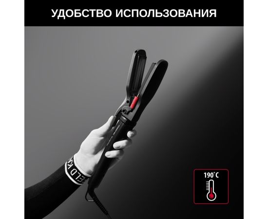 Комплектация Коническая плойка, защитная перчатка, щипцы и выпрямляющие пластины, спиральная щетка, пластиковая щетка, 2 кусачки, ручка, чехол