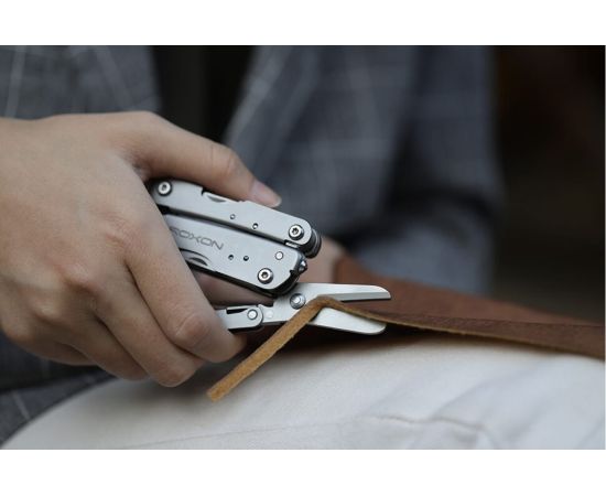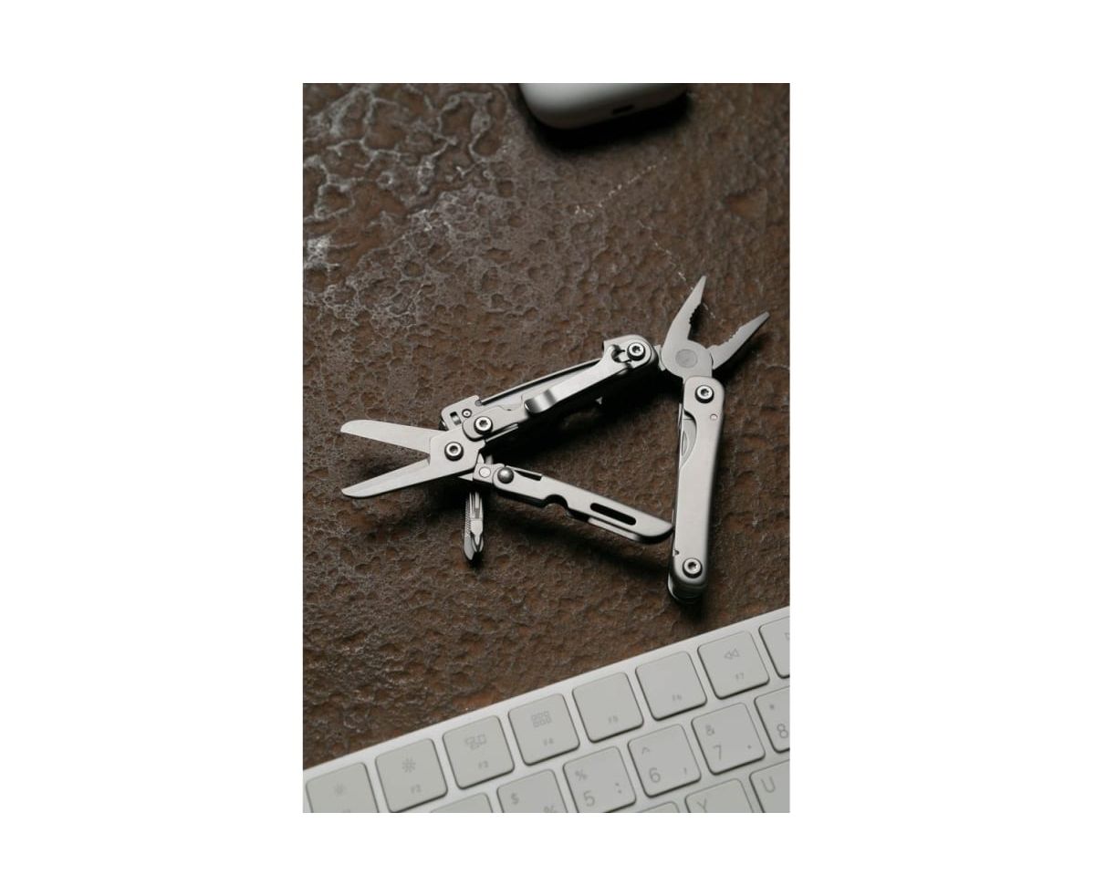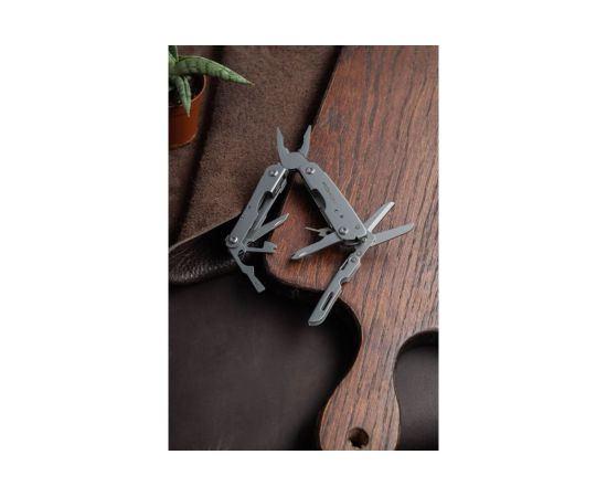 В этом мультиинструменте объединены 14 разных функций. В том числе: пилка для ногтей, отвёртка, плоскогубцы, нож, открывалка для коробок, консервный нож, ножницы, приспособление для разбивания стекла и другие приспособления. С помощью таких удобных орудий вы сможете выполнить множество стандартных операций, с которыми человек чаще всего имеет дело.