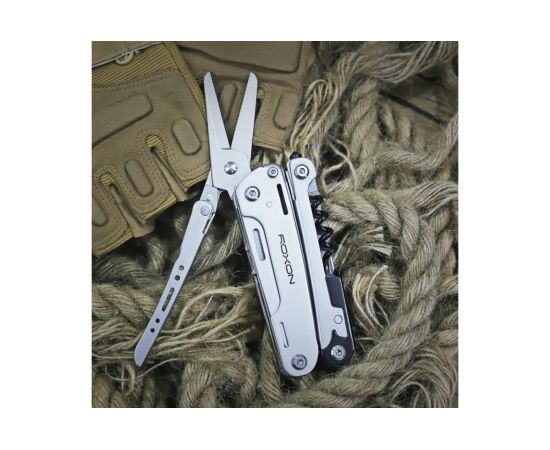 плоскогубцы, кусачки, ножницы, битодержатель, штопор, консервный нож, шило, стропорез, плоская отвертка, нож, стеклобой, напильник, пила