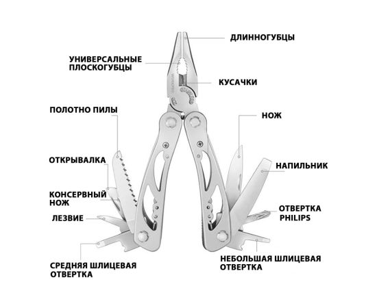 В мультитул входят следующие инструменты: