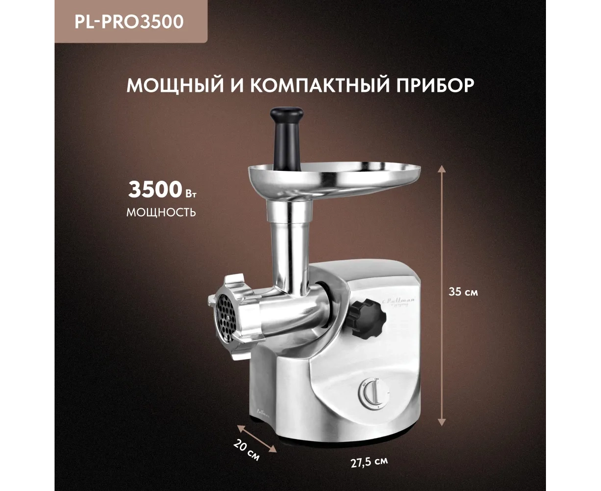 Мясорубка Pullman PL-PRO3500, 3500 Вт, шинковка, до 3.5 кг/мин.