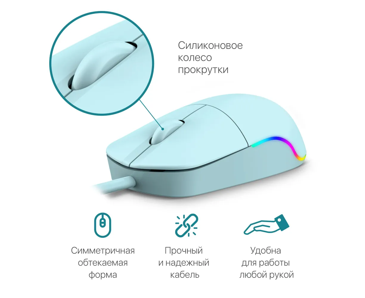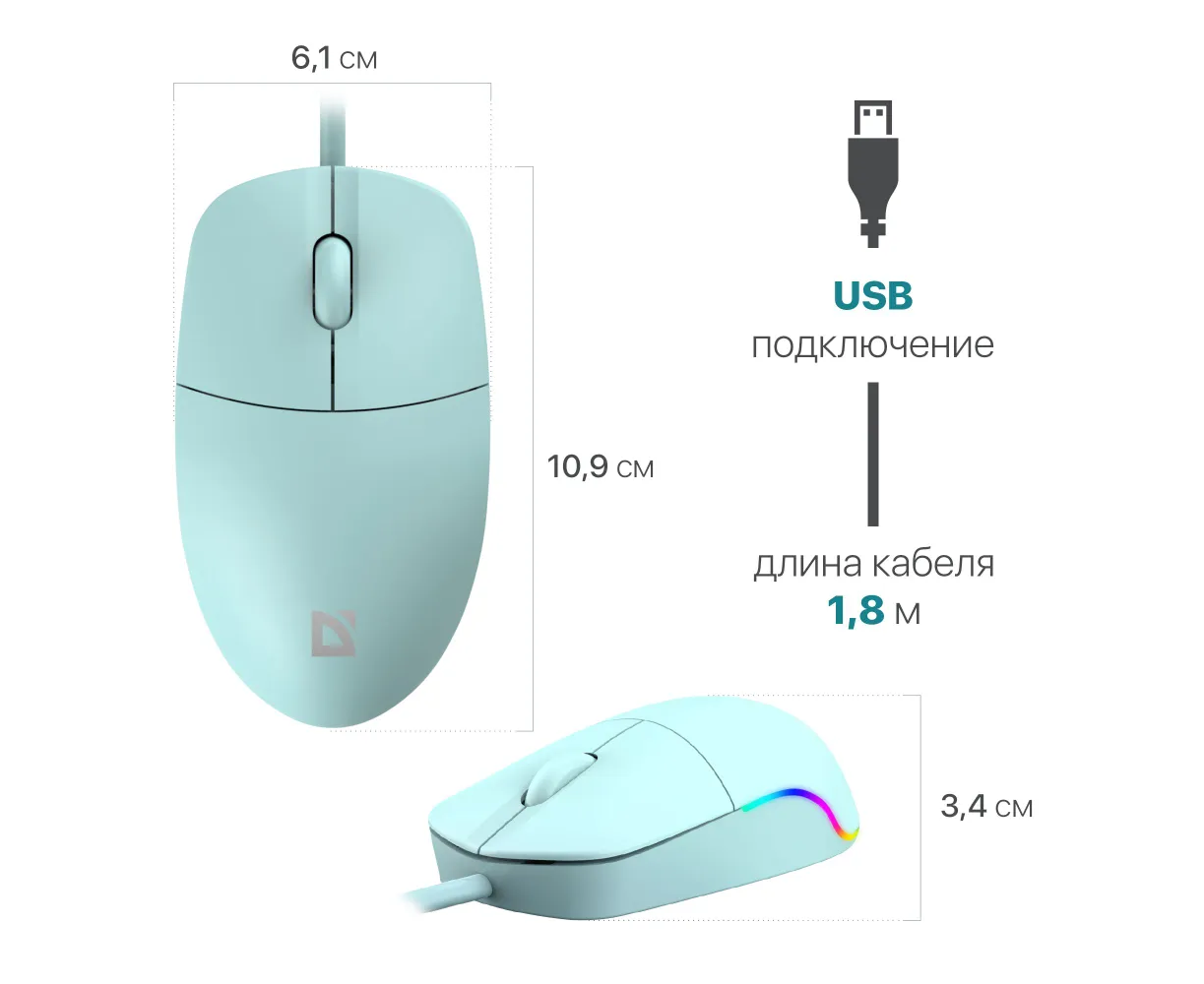 Купить мышку можно не только для ПК. Девайс подключается как к компьютеру, так и к ноутбуку с помощью интерфейса USB, что обеспечивает стабильность связи и высокую скорость взаимодействия. Питание мыши осуществляется непосредственно от USB. Разрешение используемого в конструкции девайса сенсора составляет 1200 dpi. Благодаря этому мышка чутко реагирует на команды пользователя и может использоваться для решения различных задач. Defender Azora MB-241 отлично подойдёт как для работы с офисными программами и приложениями, так и для игры в самые требовательные шутеры, бродилки и стрелялки. Корпус мыши изготовлен из качественного пластика окрашенного в голубой цвет. Конструкция девайса продумана до мелочей и создана таким образом, чтобы обеспечить пользователю удобный охват ладонью руки и высокий уровень комфорта при использовании.