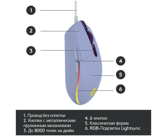 Мышь Logitech G102 LightSync (910-005857) оптическая (8000dpi) USB (5but) сиреневый