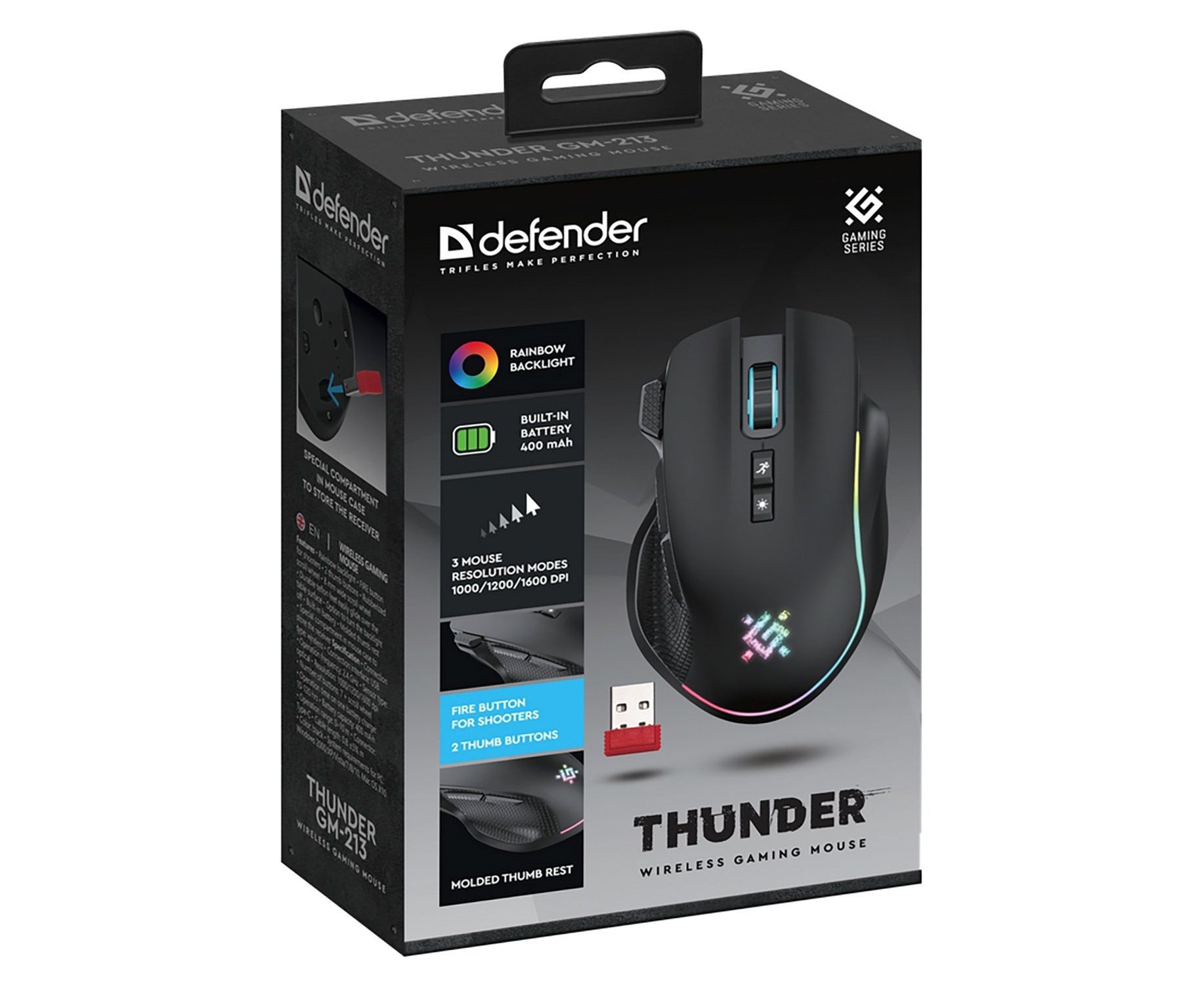 Мышь оптическая беспроводная Defender Thunder GM-213 1600dpi, 400мАч игровая (black) (238167)