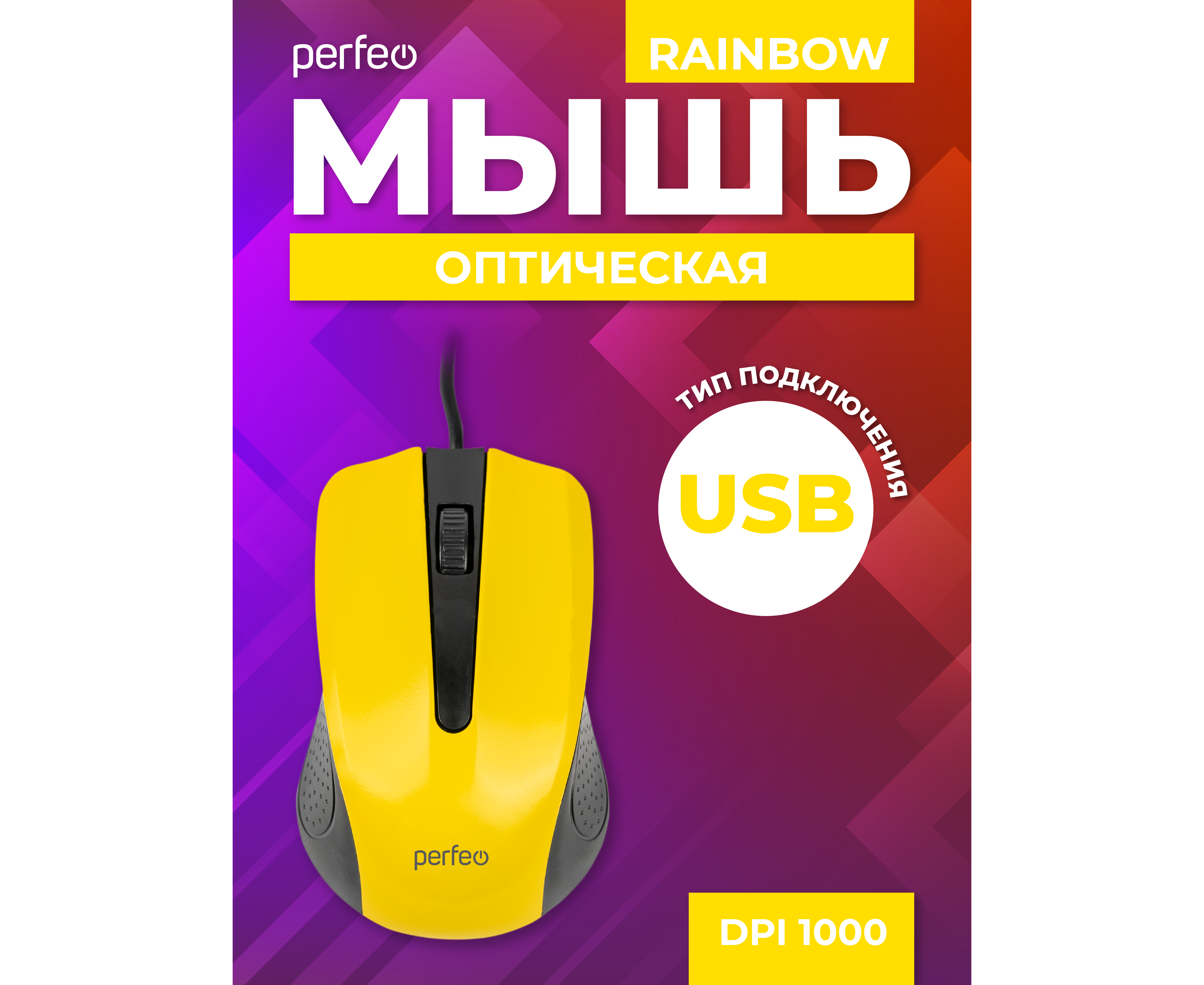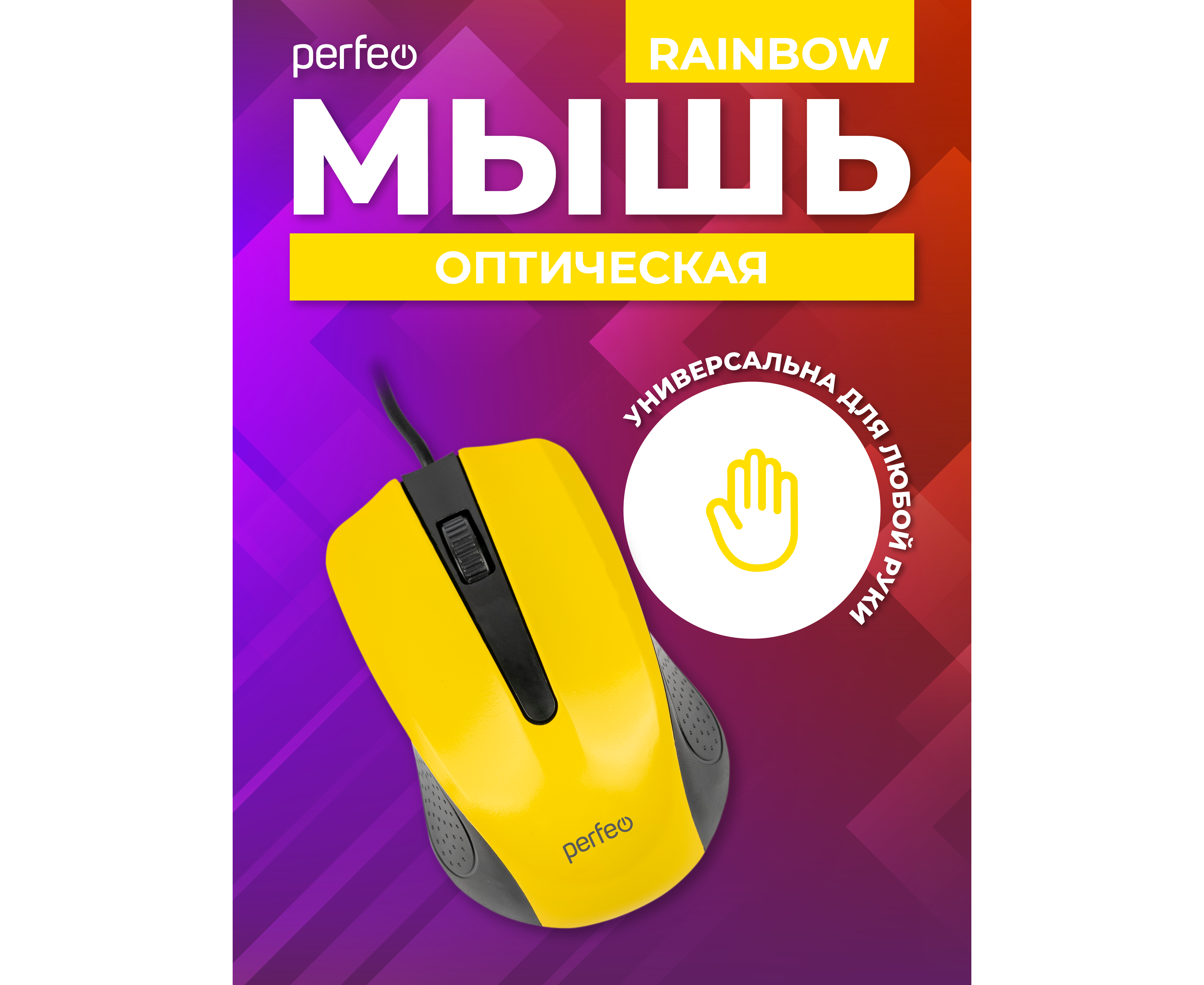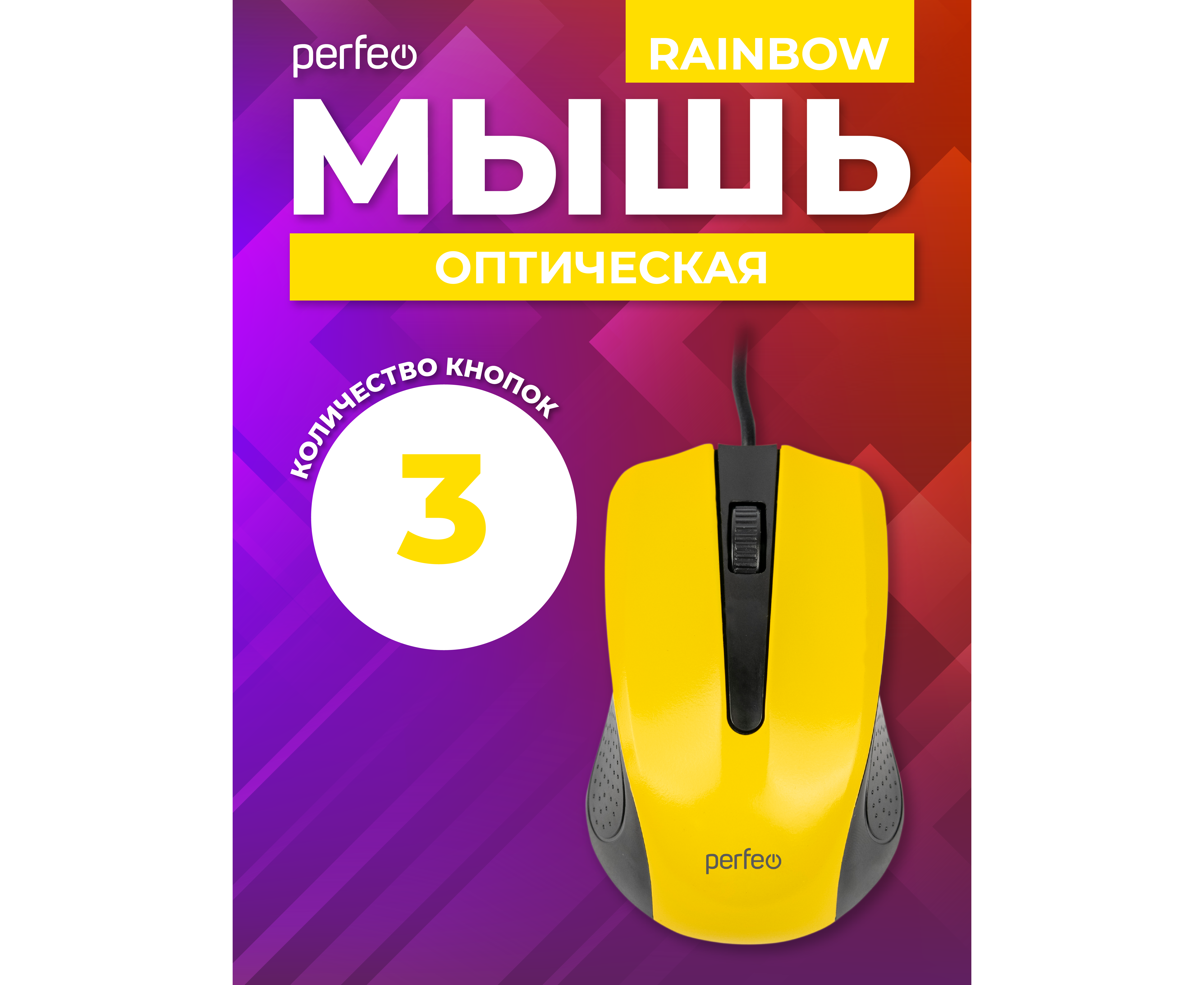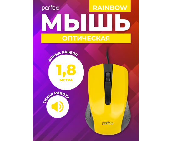 Оптическая мышь Perfeo "RAINBOW", 3 кн, USB, чёрный/жёлтый, (Арт. PF_3443)