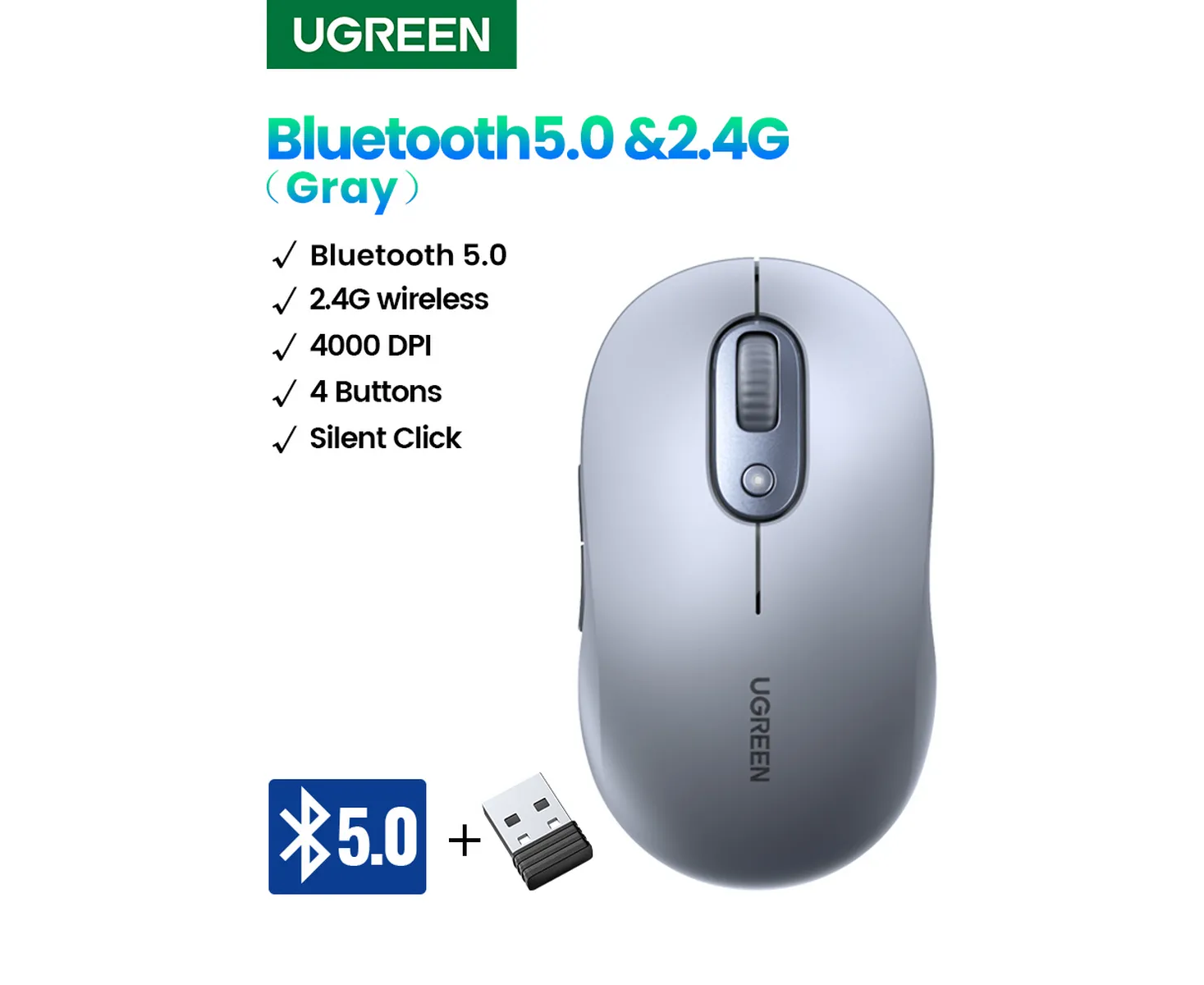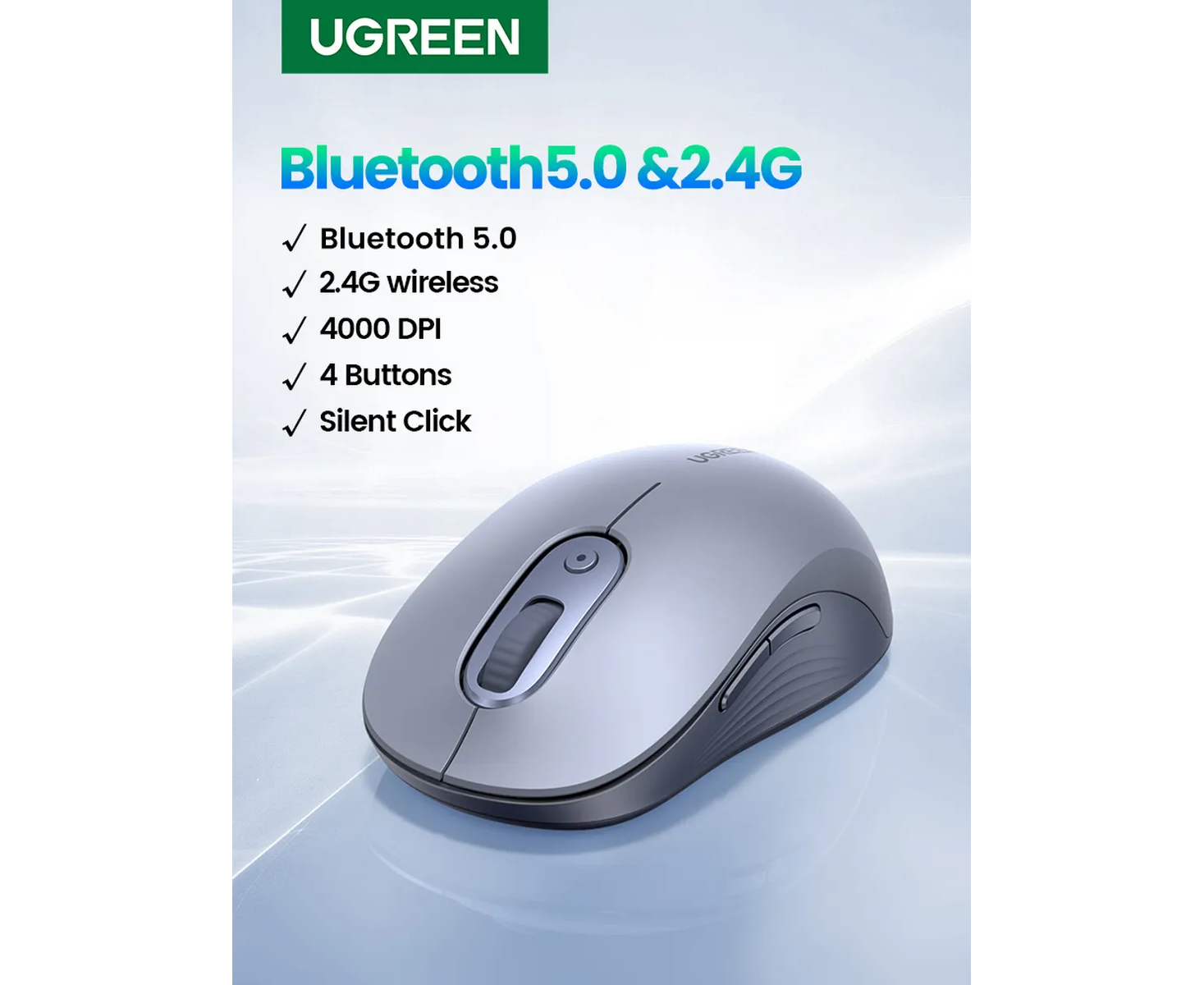 Мышь UGREEN M556 (75129) Multi-mode Wireless Mouse BT GHz серый