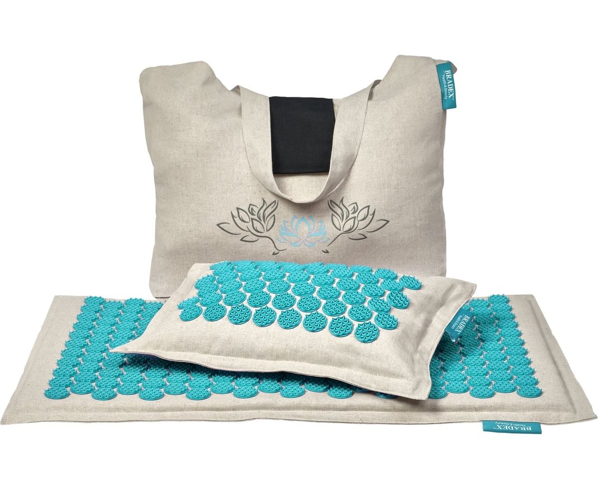 Набор акупунктурный Bradex KZ 0712 Нирвана бежевый бирюзовые шипы премиум-серия