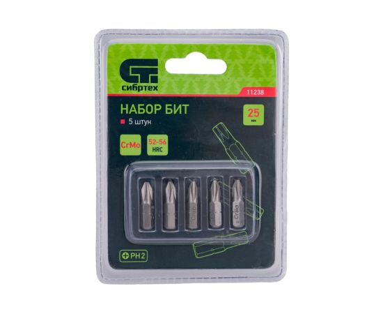 Набор бит Сибртех 11238 PH2x25, сталь CrMo, 5шт