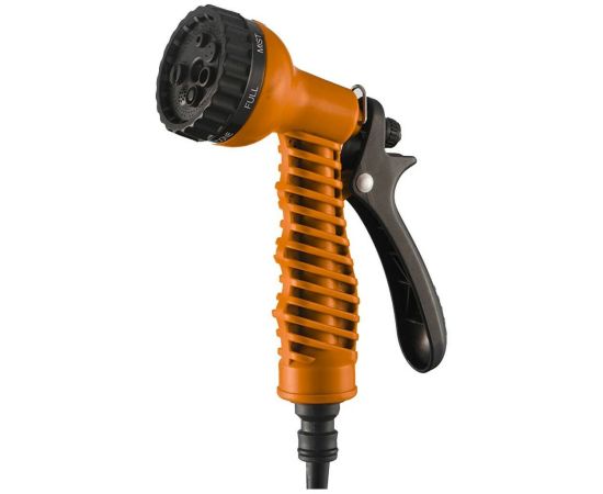 Комплектуется распылительным пистолетом с 7 режимами орошения для эффективного полива участка.