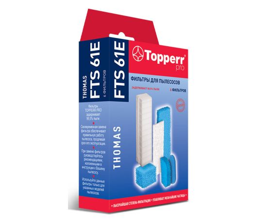 Описание: Набор фильтров FTS 61E для моющих пылесосов Thomas. В наборе 6 предметов: моторный фильтр (2 вида на выбор), «мокрый» фильтр-кубик (предотвращает попадание влаги в моторный отсек.), микрофильтр, губчатый фильтр, HEPA-фильтр (очищает воздух от мельчайших частиц и бактерий, задерживает 99,5% пыли).