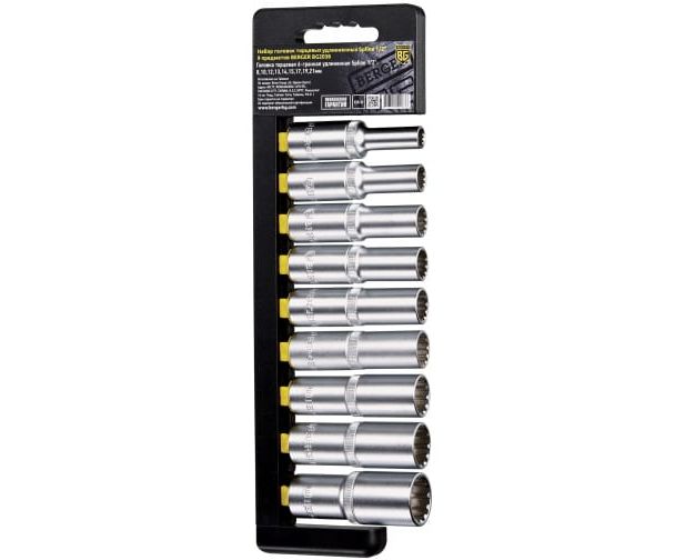 Набор головок торцевых BERGER BG2039 1/2" Spline 9 предметов (8-21 мм)