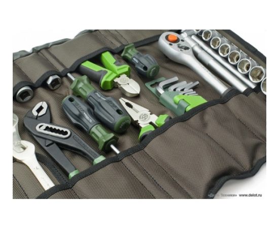 Набор инструмента 1/2" в сумке 44шт Дело Техники 620943 включает в себя разнообразное множество ручных инструментов и приспособлений для выполнения широкого спектра ремонтно-сборочных работ. Такой набор подойдет для использования в быту, автосервисах и прочих столярно-слесарных мастерских. Все компоненты удобно расположены в сумке из масло-водоотталкивающей ткани Oxford.