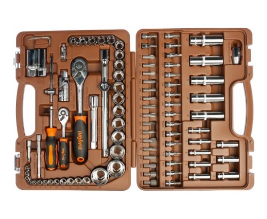 Универсальный набор инструмента применяется для крепежных работ. В удобном пластиковом кейсе компактно расположено 94 предмета. При правильных условиях эксплуатации, компания Ombra дает пожизненную гарантию на инструменты.