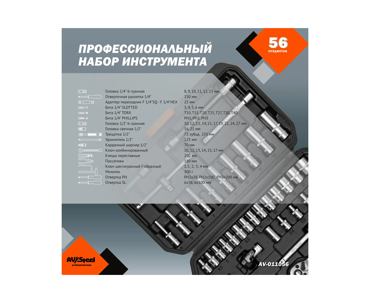 Технические характеристики набора инструмента AV Steel AV-011056